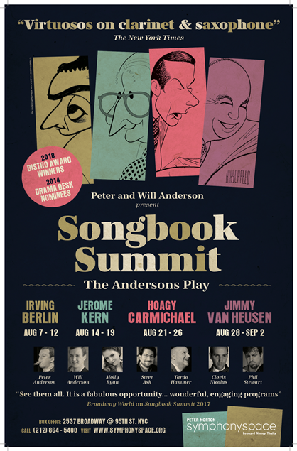 "Virtuosos on clarinet and saxophone," (The New York Times) identical twins and Juilliard graduates Peter & Will Anderson and their six-piece ensemble shine the spotlight on four iconic composers (one per week) in a celebration of the Great American Songbook. The show features an engaging video presentation, entertaining narration, and live performances from the jazz sextet. www.PeterAndWillAnderson.com