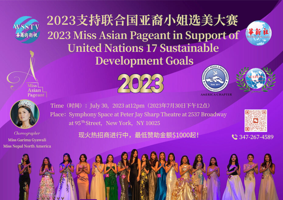 2023 Miss Asian Pageant in support of the United Nations 17 Sustainable Development Goals followed by Good Voice of Americas Singing and Dancing and talents performance WSSTV Cup Contest and ending with Certificate and Award issuing ceremony.