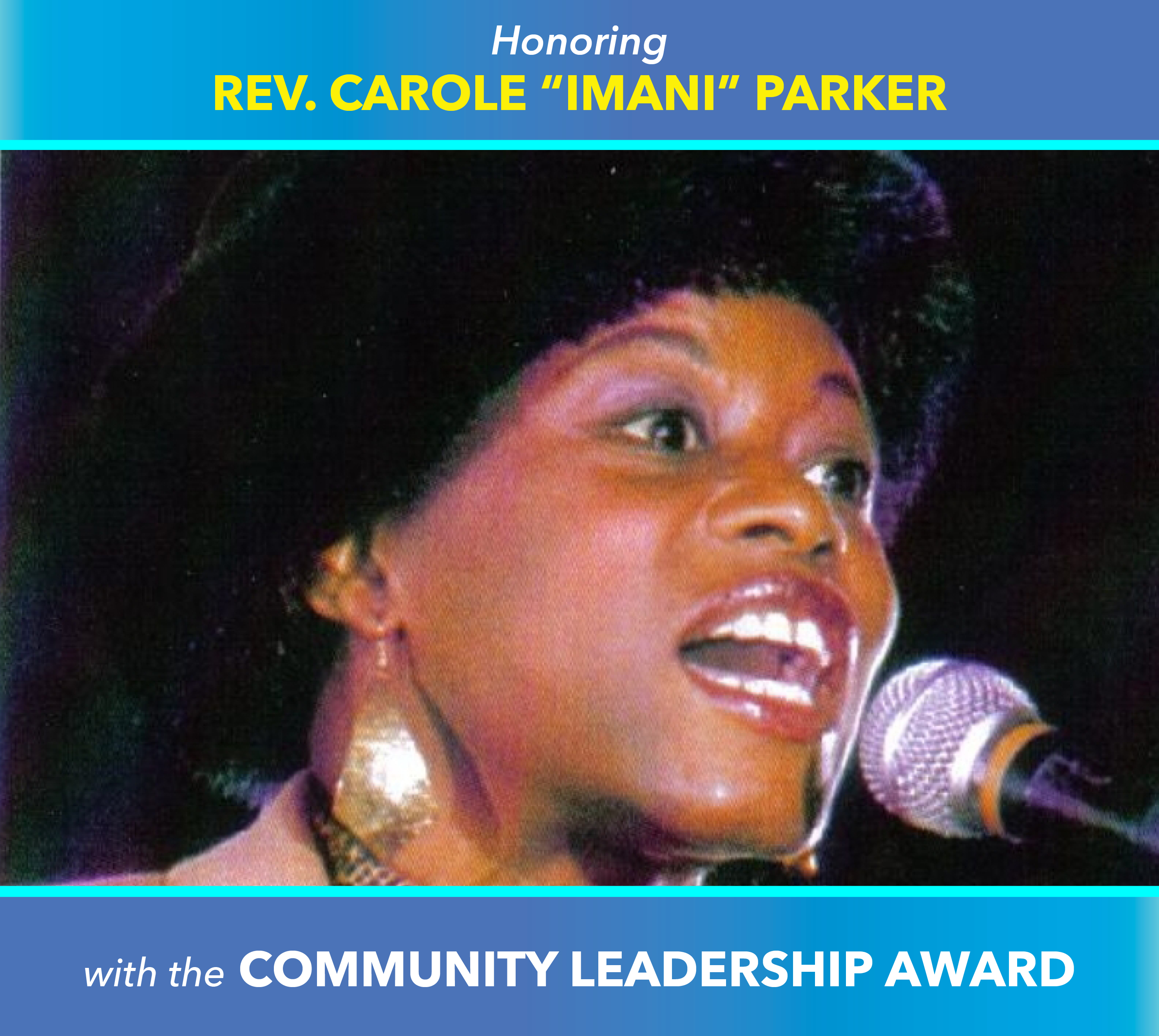 We will honor Reverend Carole "Imani" Parker with the COMMUNITY LEADERSHIP AWARDfor her Outstanding Contribution Enriching the Lives of Youth. Reverend. Imani is an Interfaith Minister, speaking at various churches and venues. She is also a professional actress who has performed in numerous theatrical productions, including a one-woman monologue, depicting the life and times of Sojourner Truth and a production by Linda Cousins Newton called The Spirit of Mama Moses , which has been performed throughout the United States and in Ghana.
