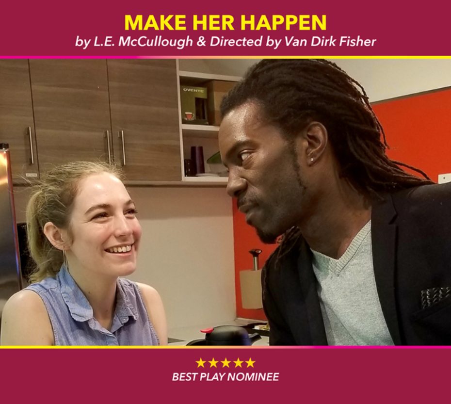 directs Ejyp Johnson, who has appeared in the films Like Father (Netflix) with Kristen Bell and Kelsey Grammar and See You Yesterday (Netflix) and television’s Blue Bloods (CBS), in the play Make Her Happen by L.E. McCullough. Co-starring is Gloria Bangiola, who has appeared as Mina Murray in Bram Stoker’s Dracula with InterACT Theater Productions, NJ and President Wintergreen in Brooklyn Baby (Let 'Em Eat Cake) with The Conservatory of Music of Brooklyn College. Make Her Happen is a powerful play about people’s obsession with being famous. We witness it today where having the most likes on social media has replaced the importance of making real connections. In Mr. McCullough’s play, a waitress in a small town diner sees the opportunity for her entire life to change when a well dressed gentleman from New York City enters the establishment.
