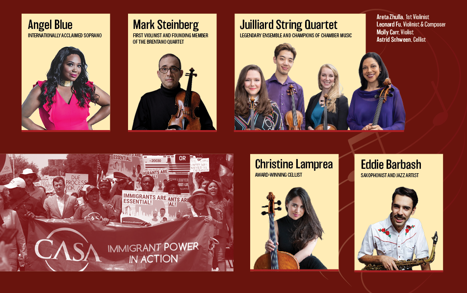 The concert will feature special performances from Angel Blue, Mark Steinberg, the Juilliard String Quartet, Marija Stroke, Christine Lamprea, Llewellyn Sánchez-Werner, Eddie Barbash, Shane Shanahan, and Bruce himself.