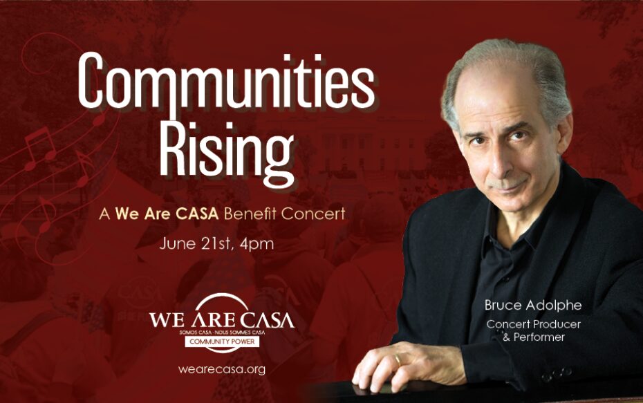 Composer, author, lecturer, and performer Bruce Adolphe, also known as the Piano Puzzler on public radio, has created a substantial body of musical works inspired by science, visual arts, and human rights. Join us for a memorable afternoon with Bruce and friends to support and uplift working-class and immigrant communities through this benefit concert for We Are CASA.