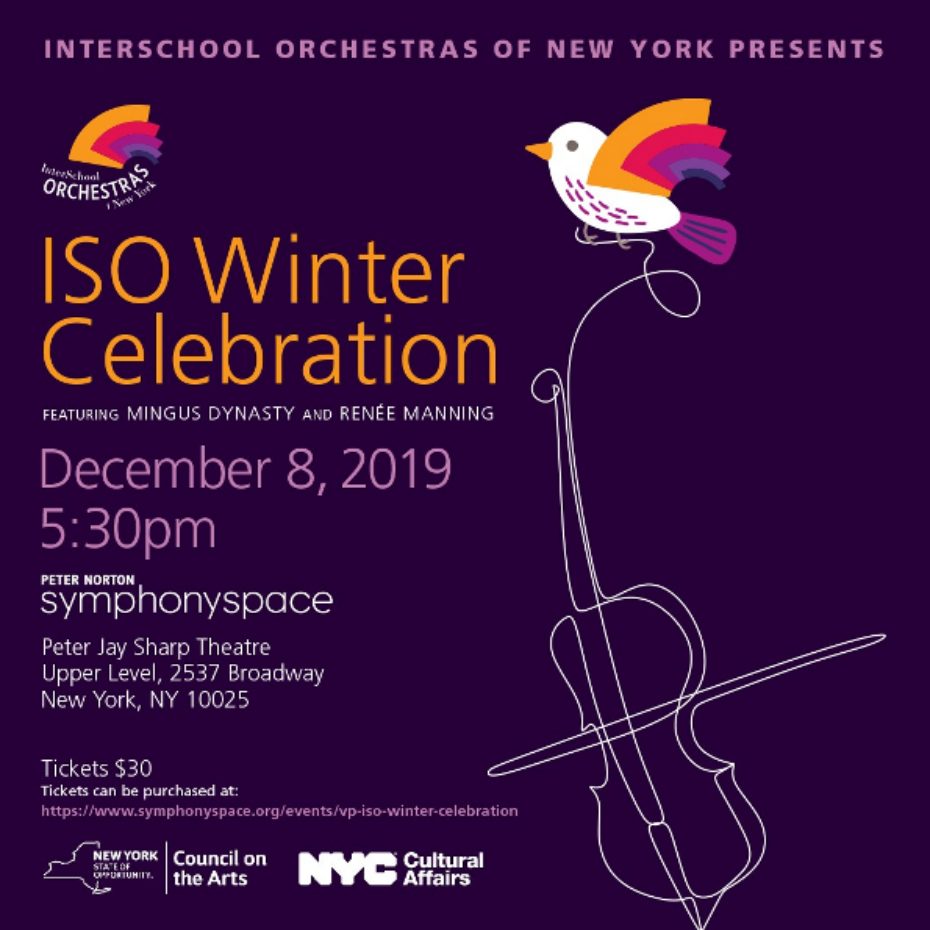 ”The InterSchool Orchestras of New York (ISO), a nonprofit organization, is changing the face of youth orchestra music with its focus on cross-cultural genres in announcing its 2019-2020 Season in New York City. New partnerships with many diverse and prestigious organizations highlight the rich cultural heritage of the City and expose young musicians to a wide range of musical collaborations.” – Musical America