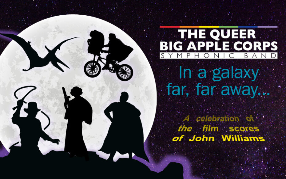 New York City’s own Queer Big Apple Corps (the new name for the Lesbian & Gay Big Apple Corps!) returns to Symphony Space to celebrate the beloved film scores of John Williams, in honor of his 90th birthday. Under the bejeweled baton of conductor Henco Espag, this concert features John Williams’s most beloved scores, including Star Wars, Jurassic Park, Schindler’s List, Home Alone, Catch Me if You Can, and more. One lucky audience member will win our Name the Movie Theme contest. Join us on this nostalgic journey through the movies we’ve adored since childhood.