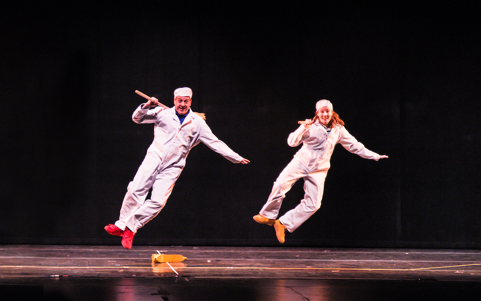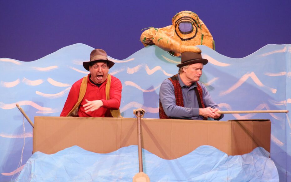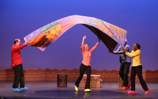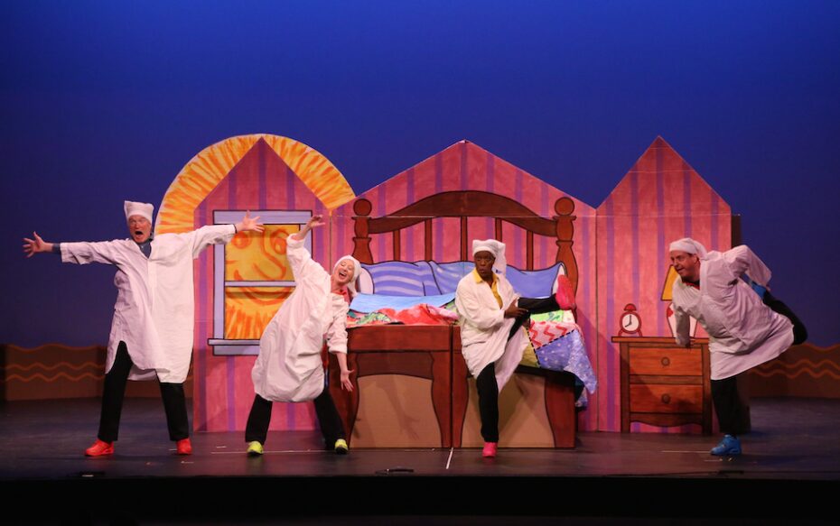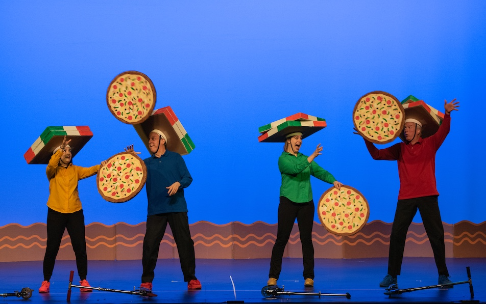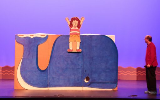 “Rise and Shine” follows the sun as it wakes up and prepares for work, punching in as the moon punches out. “We Start to Sing” continues the theme of waking up, adding the full cast in a vigorous song and dance to get things really moving. In “A Day on the Lake,” two friends on a fishing trip get more than they bargained for, while “Ants in My Pants” invites the entire audience in a song and dance to help in a tricky picnic situation. The hour is rounded out with flying pizzas, a game called “Spin-A-Dance,” a girl who rides a whale all the way home, and much more. It’s all wrapped up in our signature paper and cardboard costumes, sets and props to inspire the imagination. Come join the creativity and wake up with a smile as We Start To Sing!